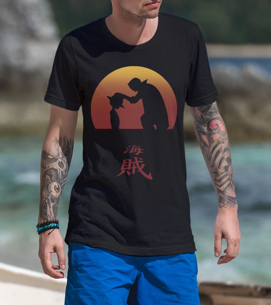 The I Will Be the Pirate King 海賊 Silhouette Scene with Setting Sun Background T-shirt is designed for everyday wear and a consistent fit. Fabric is pre-shrunk ring-spun cotton with durable stitching. See the size chart below for exact measurements.