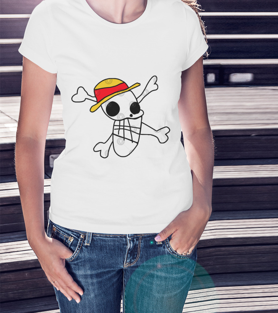 Iwaras Flag Straw Hat Skull Crossbones T-Shirt