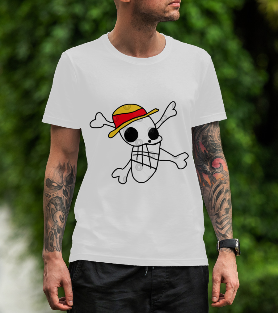 The Iwaras Flag Straw Hat Skull Crossbones T-shirt is designed for everyday wear and a consistent fit. Fabric is pre-shrunk ring-spun cotton with durable stitching. See the size chart below for exact measurements.