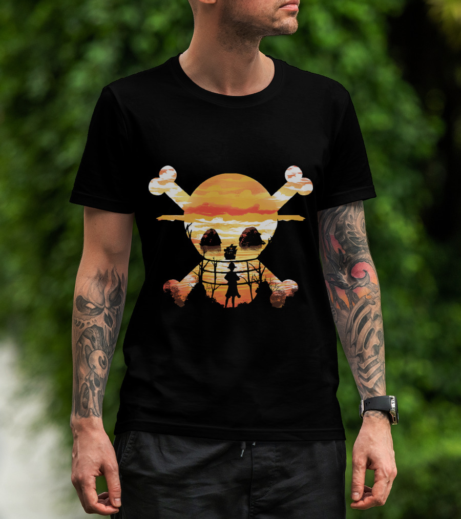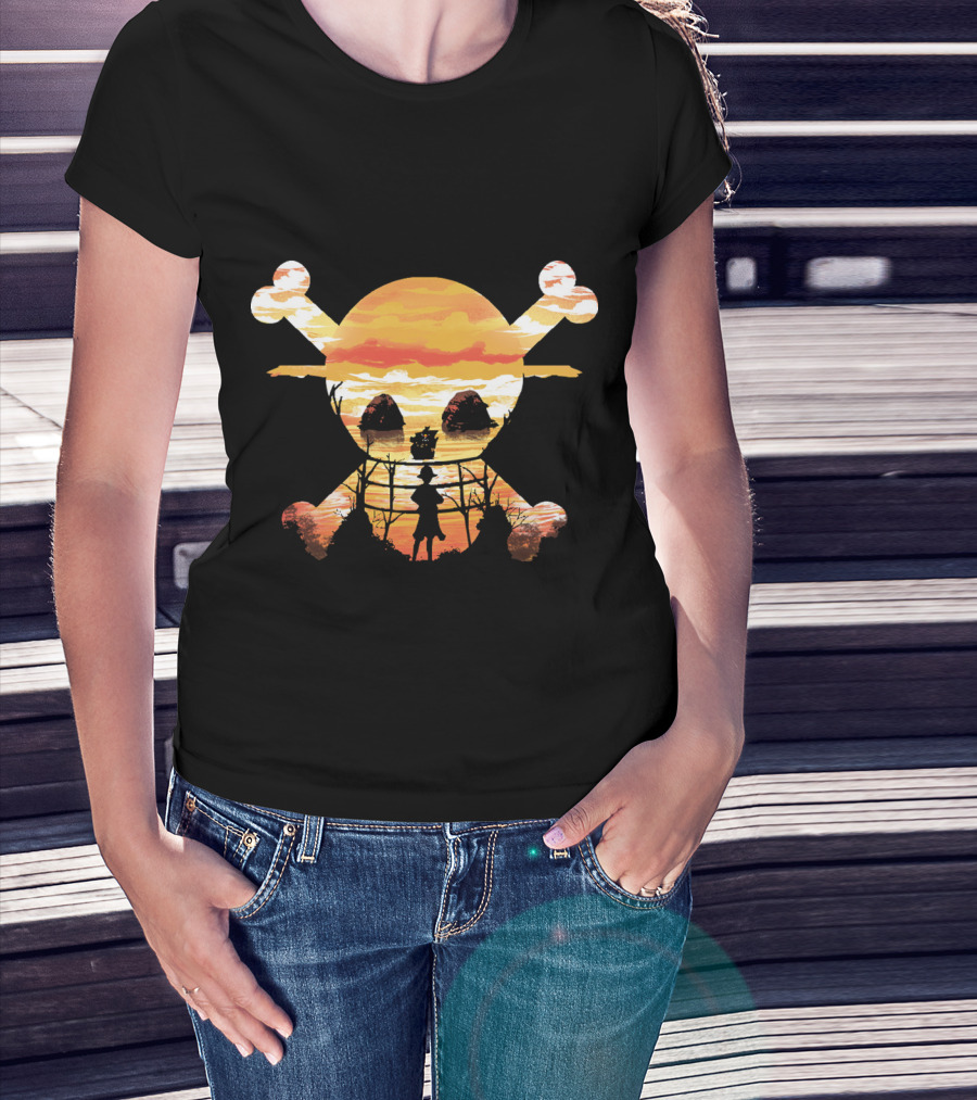The Straw Hat Crew Skull Sunset T-shirt is designed for everyday wear and a consistent fit. Fabric is pre-shrunk ring-spun cotton with durable stitching. See the size chart below for exact measurements.