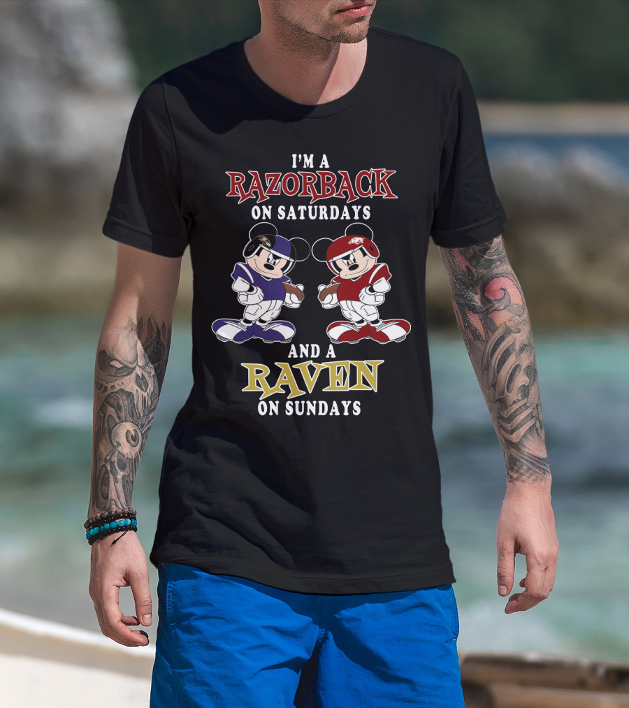 Razorback Saturdays Raven Sundays Mickey Football Characters T-Shirt