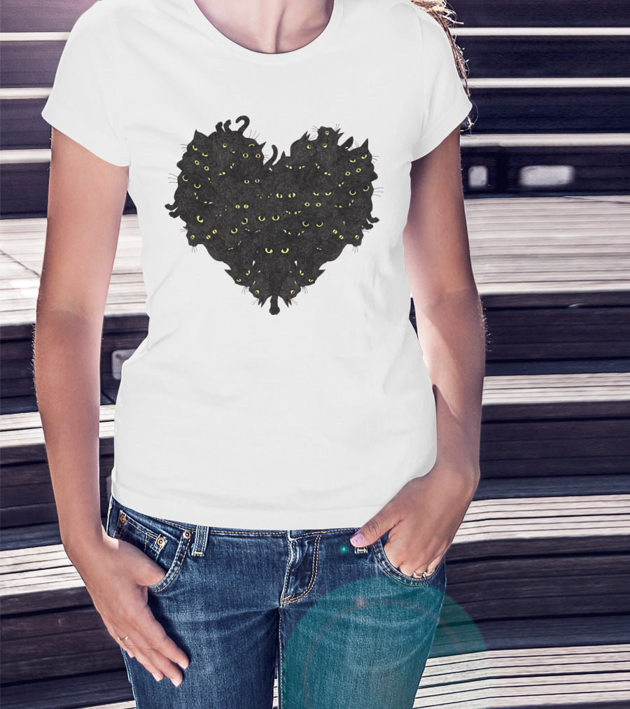 Cats Heartful Black Cats Yellow Eyes T-Shirt