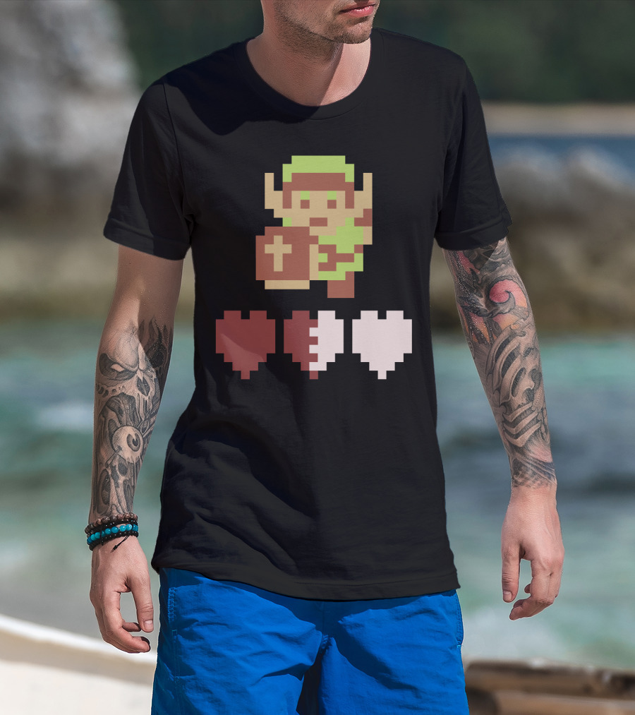The Legend Of Zelda Link Pixel Art With Heart Containers T-Shirt
