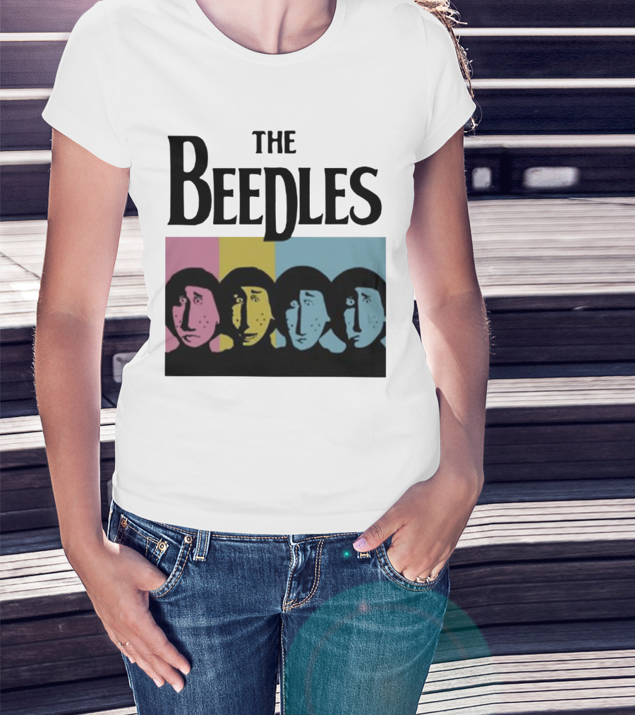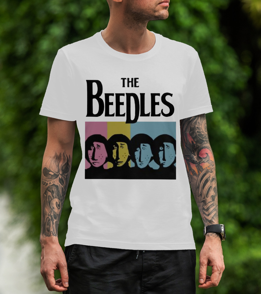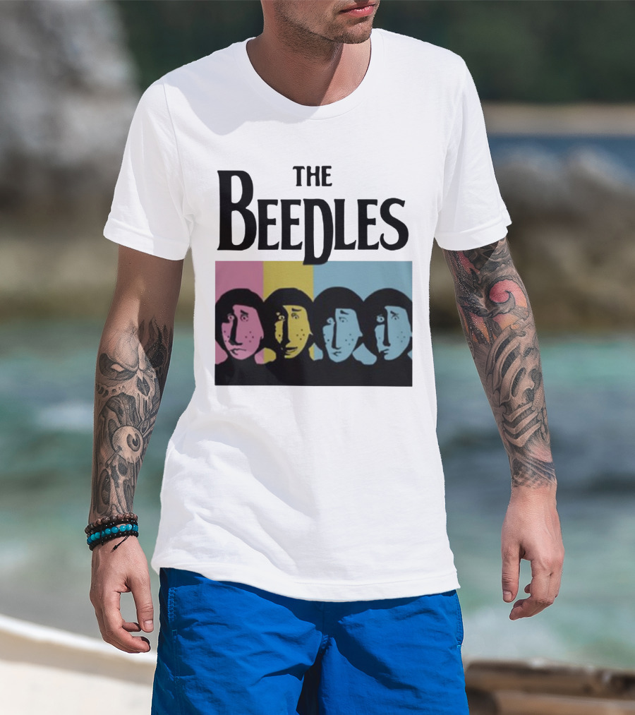 The Beedles Cartoon Pop Art Faces In Pink Yellow Blue T-Shirt