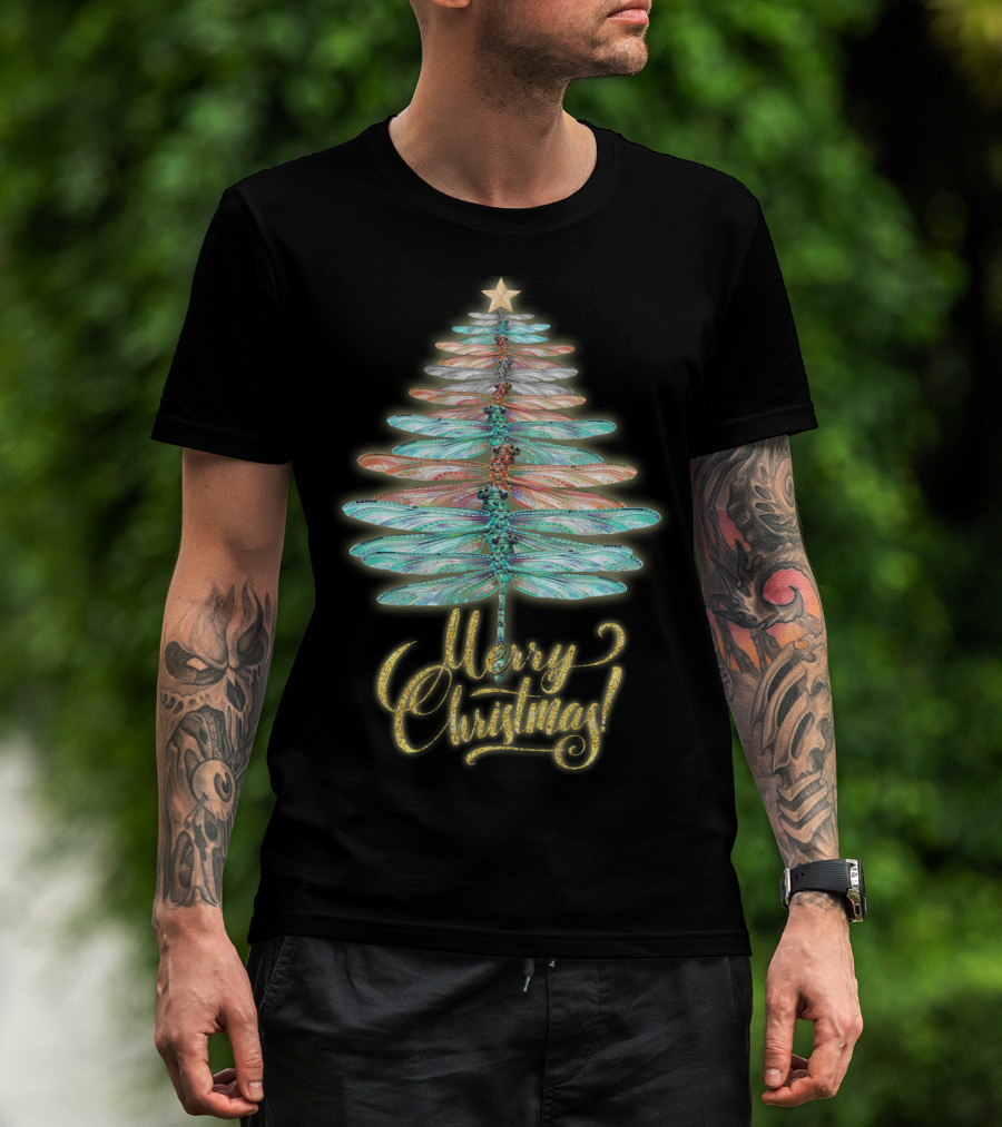 The Merry Christmas Dragonfly Tree T-shirt is designed for everyday wear and a consistent fit. Fabric is pre-shrunk ring-spun cotton with durable stitching. See the size chart below for exact measurements.