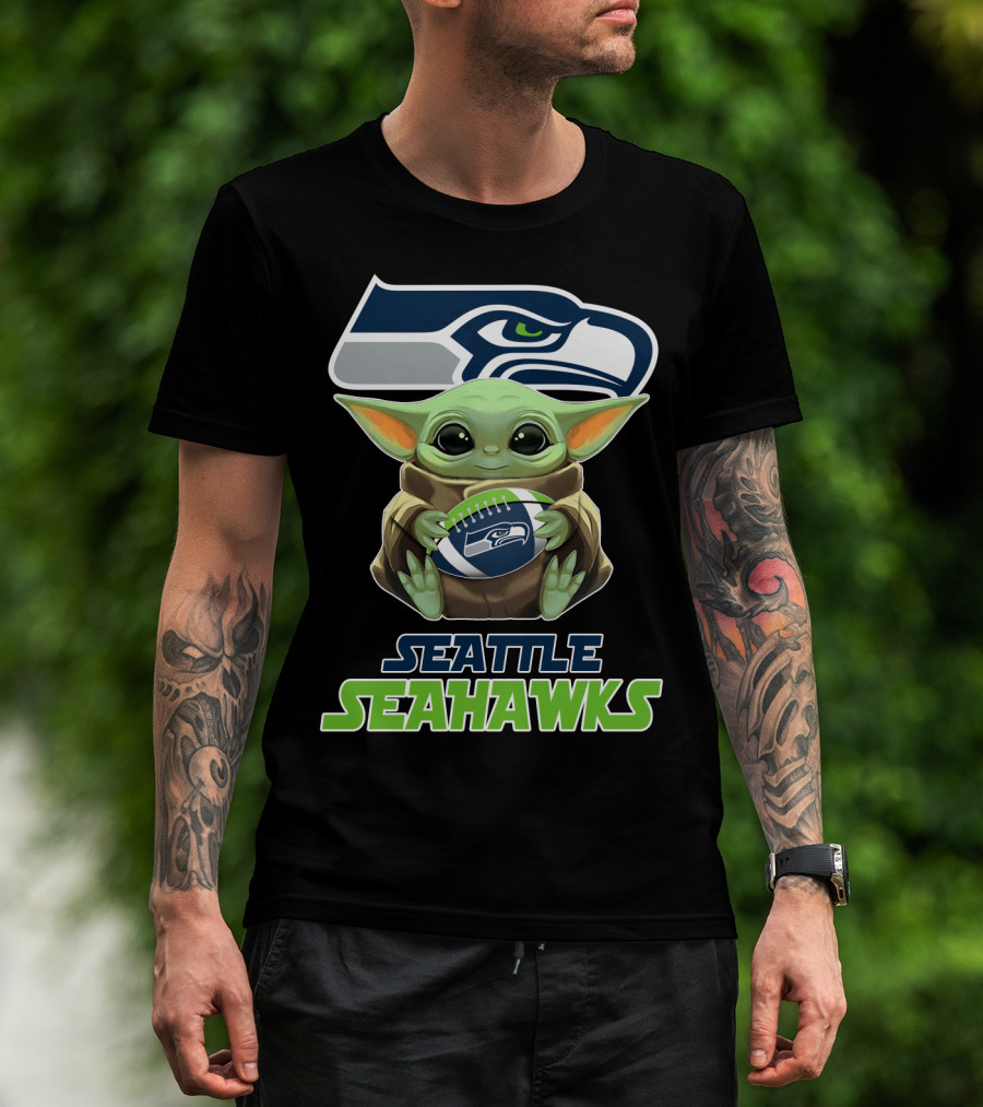 Seattle Seahawks Baby Yoda Holding Football Fan T-Shirt