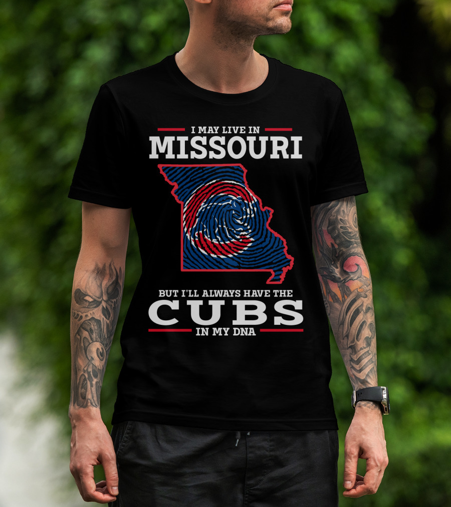 I MAY LIVE IN MISSOURI BUT I'LL ALWAYS HAVE THE CUBS IN MY DNA T-Shirt