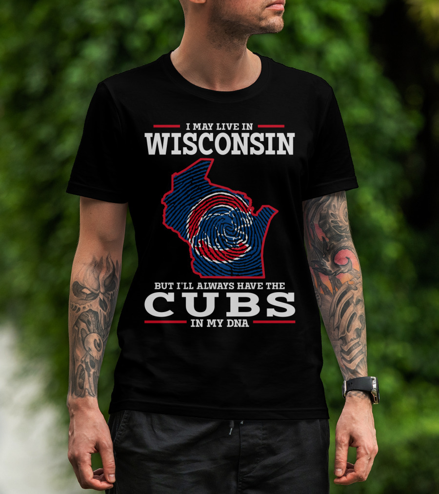 I MAY LIVE IN WISCONSIN BUT I'LL ALWAYS HAVE THE CUBS IN MY DNA T-Shirt