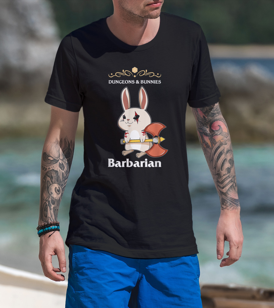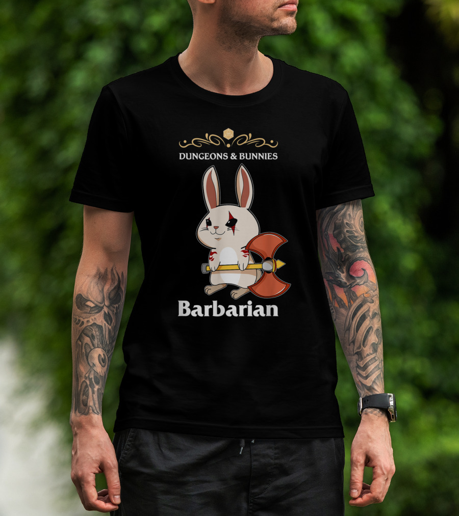 Dungeons And Bunnies Barbarian With Axe And Rune Symbols T-Shirt