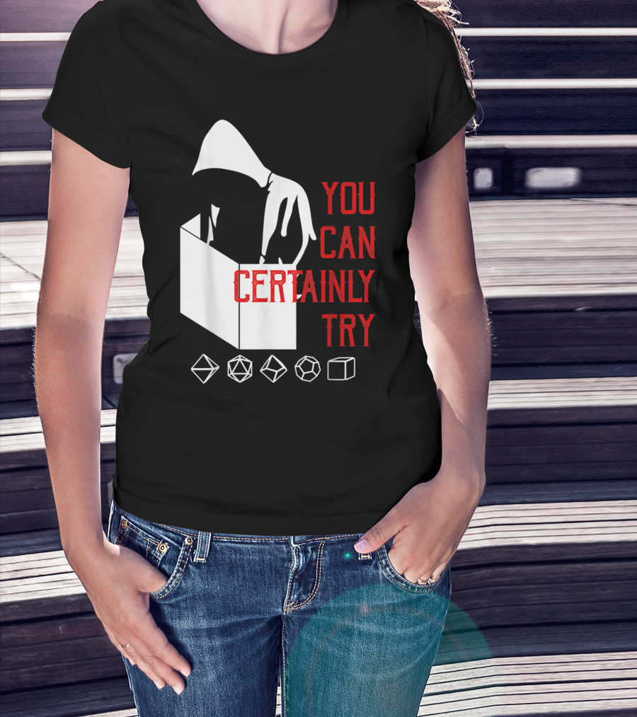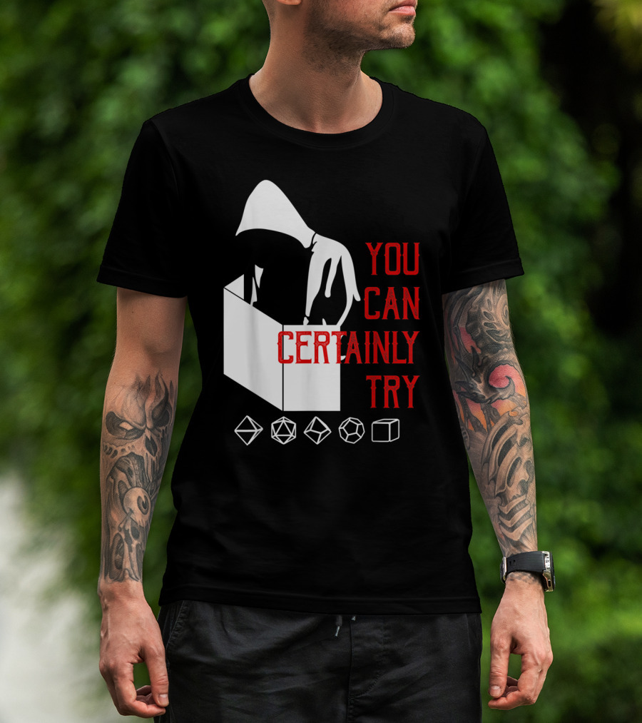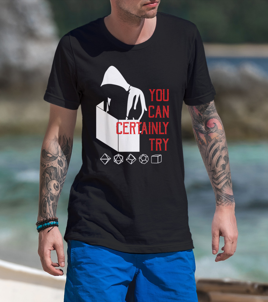 You Can Certainly Try Hooded Figure With D20 Dice Symbols T-Shirt
