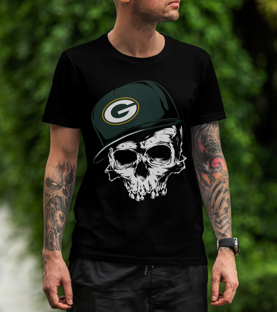 The Green Bay Packers Skull Cap T-shirt is designed for everyday wear and a consistent fit. Fabric is pre-shrunk ring-spun cotton with durable stitching. See the size chart below for exact measurements.
