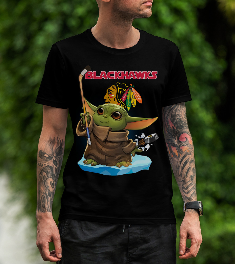 Blackhawks Baby Yoda Star Wars Hockey Crossover T-Shirt