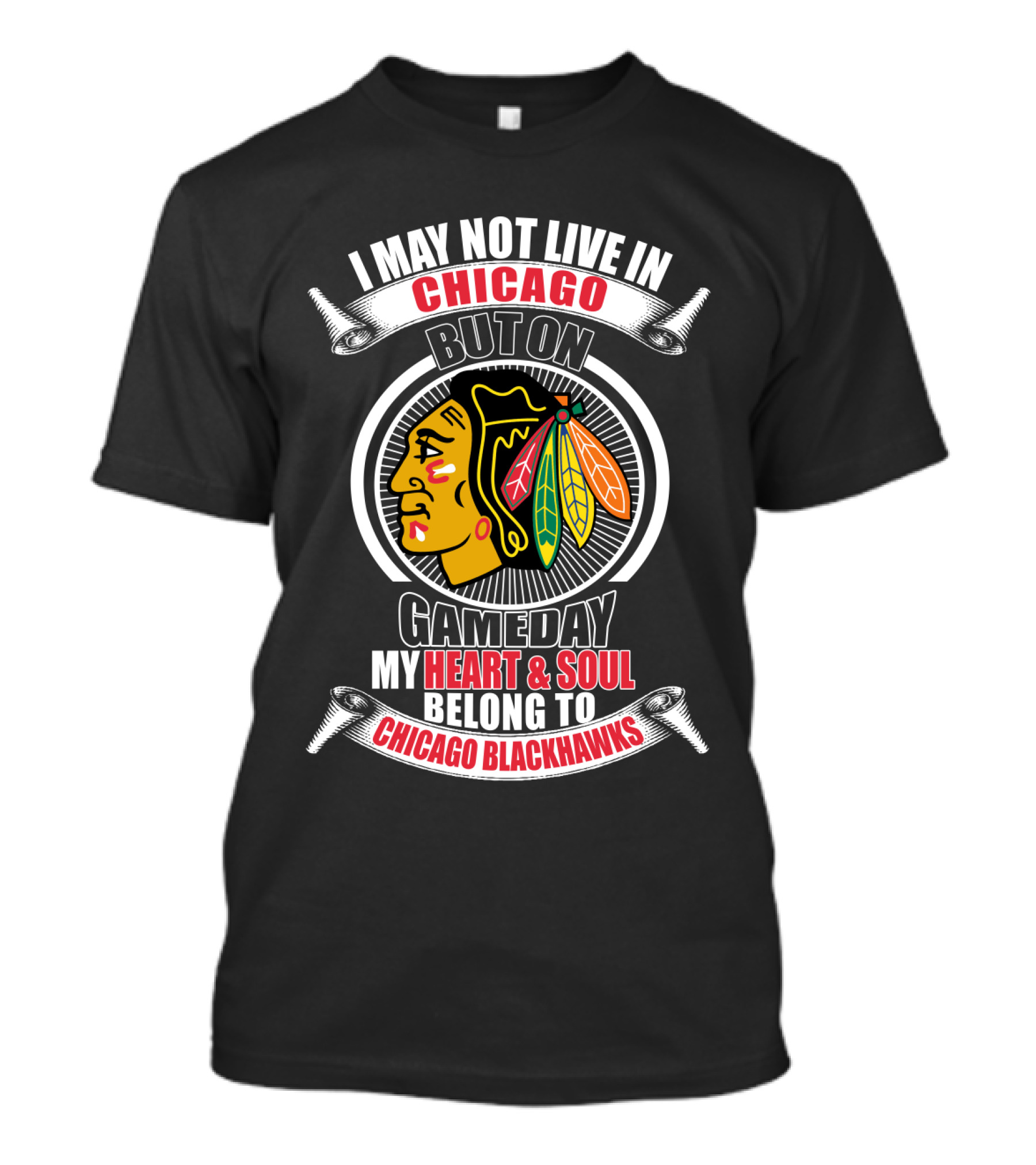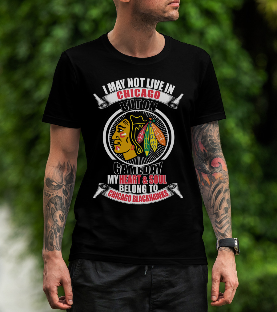 I May Not Live In Chicago But On Gameday My Heart And Soul Belong To Chicago Blackhawks T-Shirt