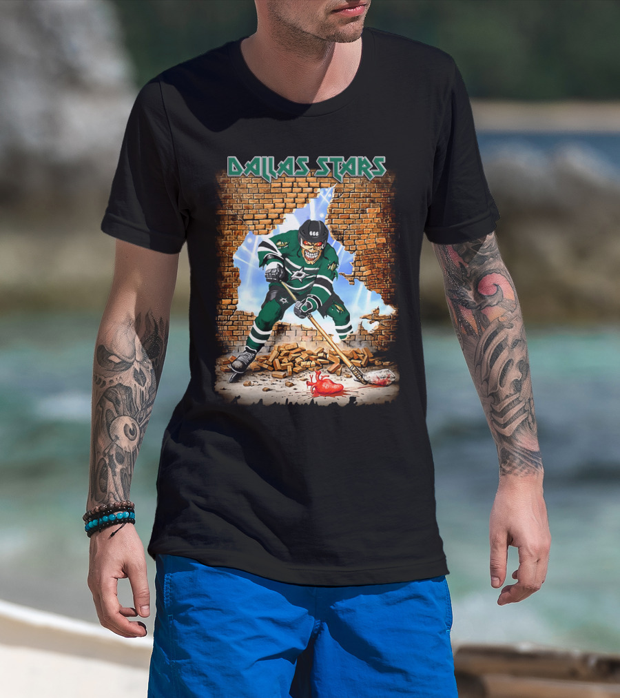 Dallas Stars Hockey Player With Broken Brick Wall And Heart T-Shirt