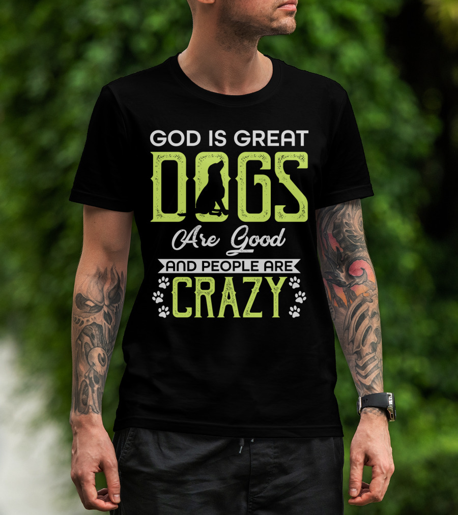 God Is Great Dogs Are Good And People Are Crazy With Paw Prints T-Shirt