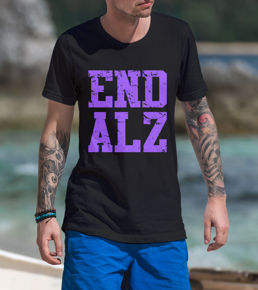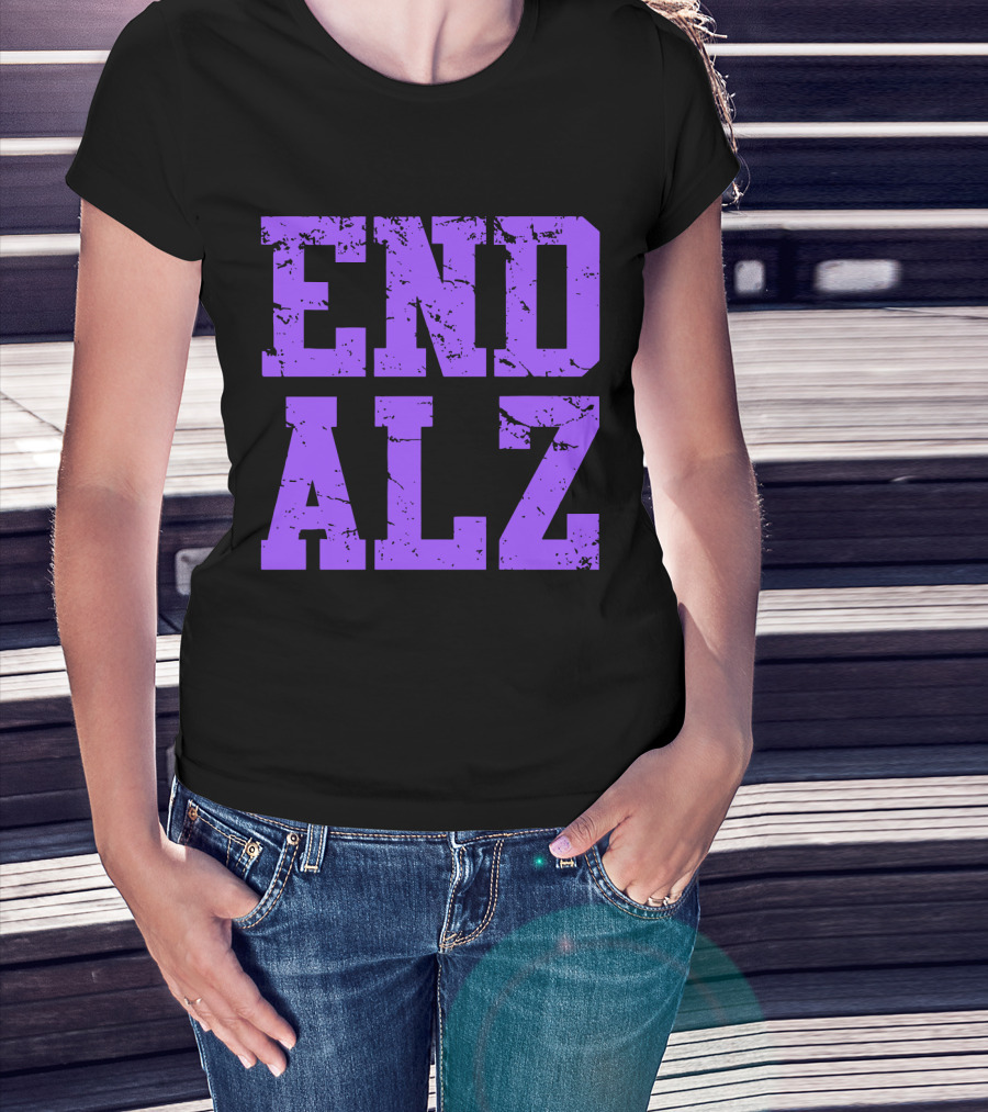 END ALZ Alzheimers Awareness Purple Text T-Shirt