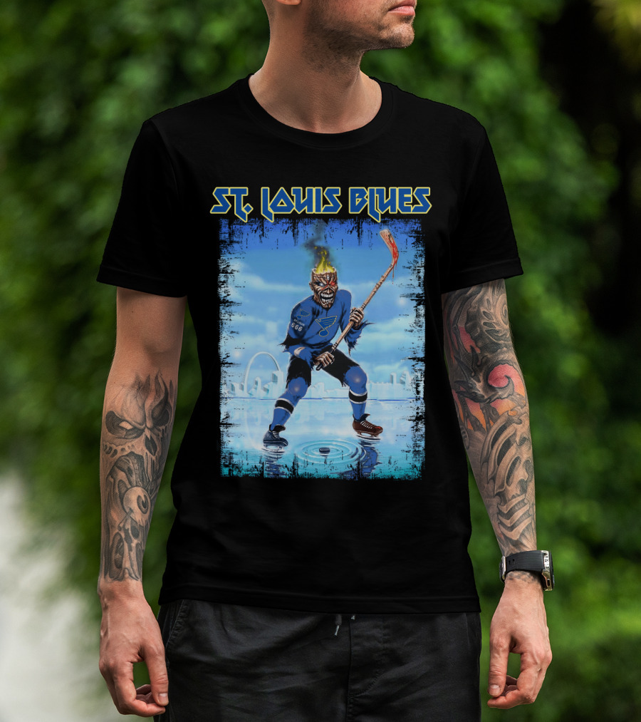 ST. LOUIS BLUES Hockey Player With Fiery Head And Ice Arena Background T-Shirt