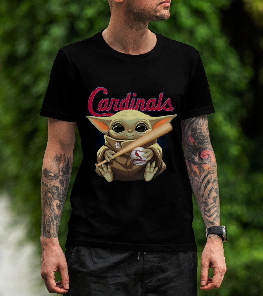Cardinals Baseball St. Louis Baby Yoda With Bat And Ball T-Shirt