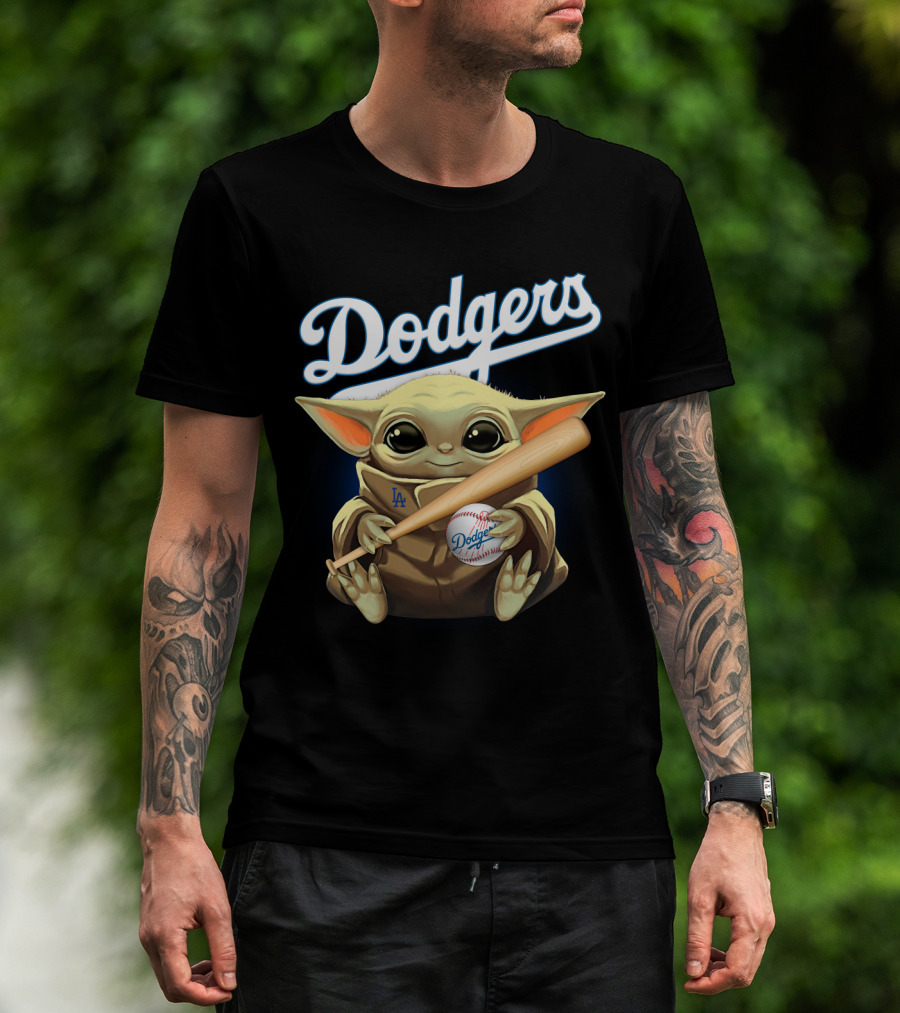 Los Angeles Dodgers Baby Yoda Baseball Bat And Ball T-Shirt