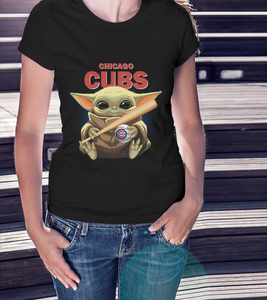 Chicago Cubs Baby Yoda With Baseball Bat T-Shirt