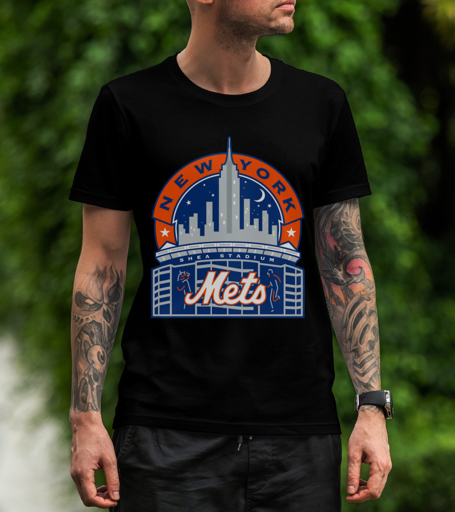 New York Mets Shea Stadium Skyline Moon Stars T-Shirt