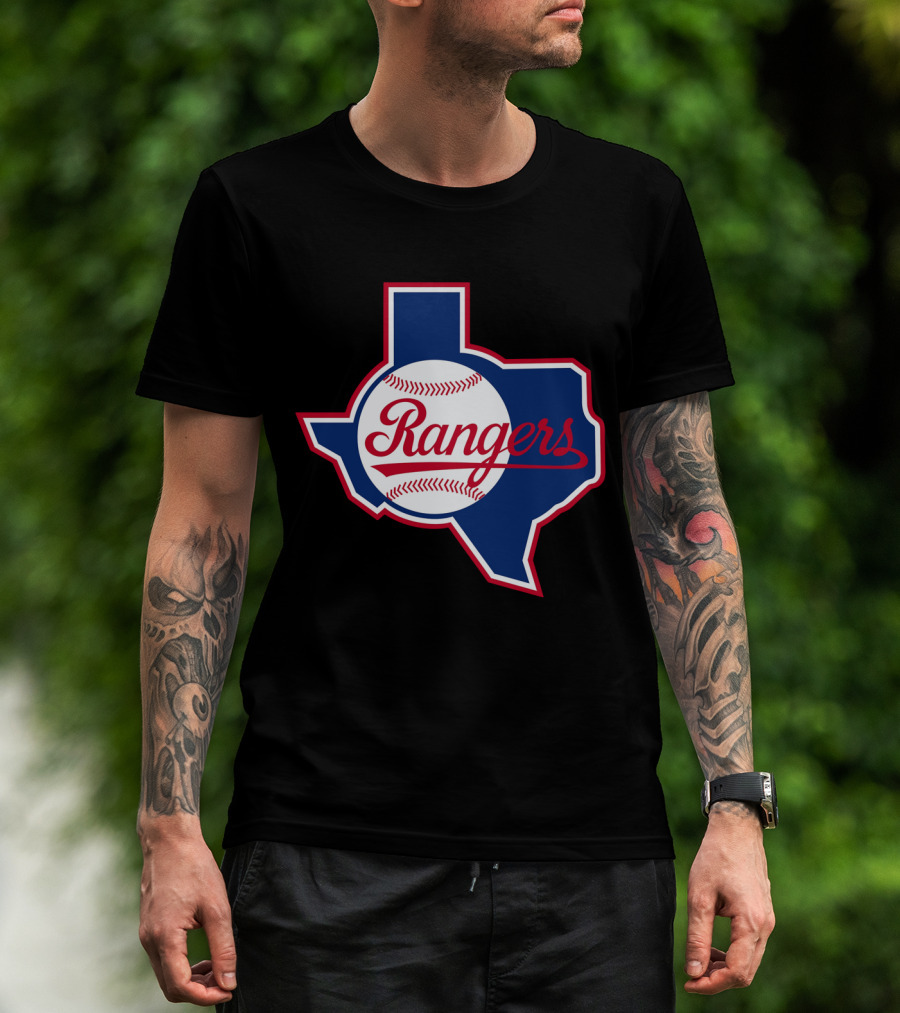 Texas Rangers Vintage Logo Texas Outline Baseball T-Shirt