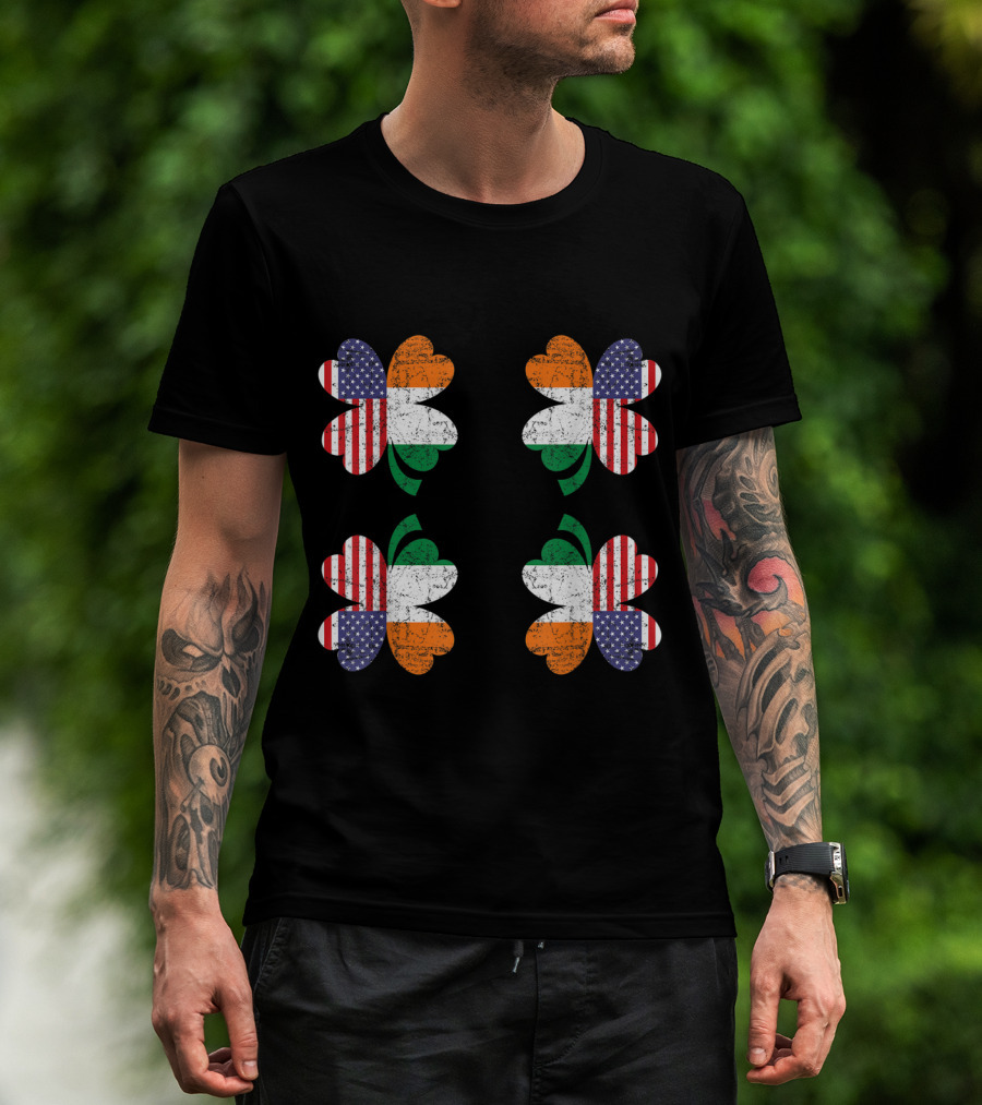 Saint Patricks Day Irish American Flag Four Leaf Clover Ireland T-Shirt