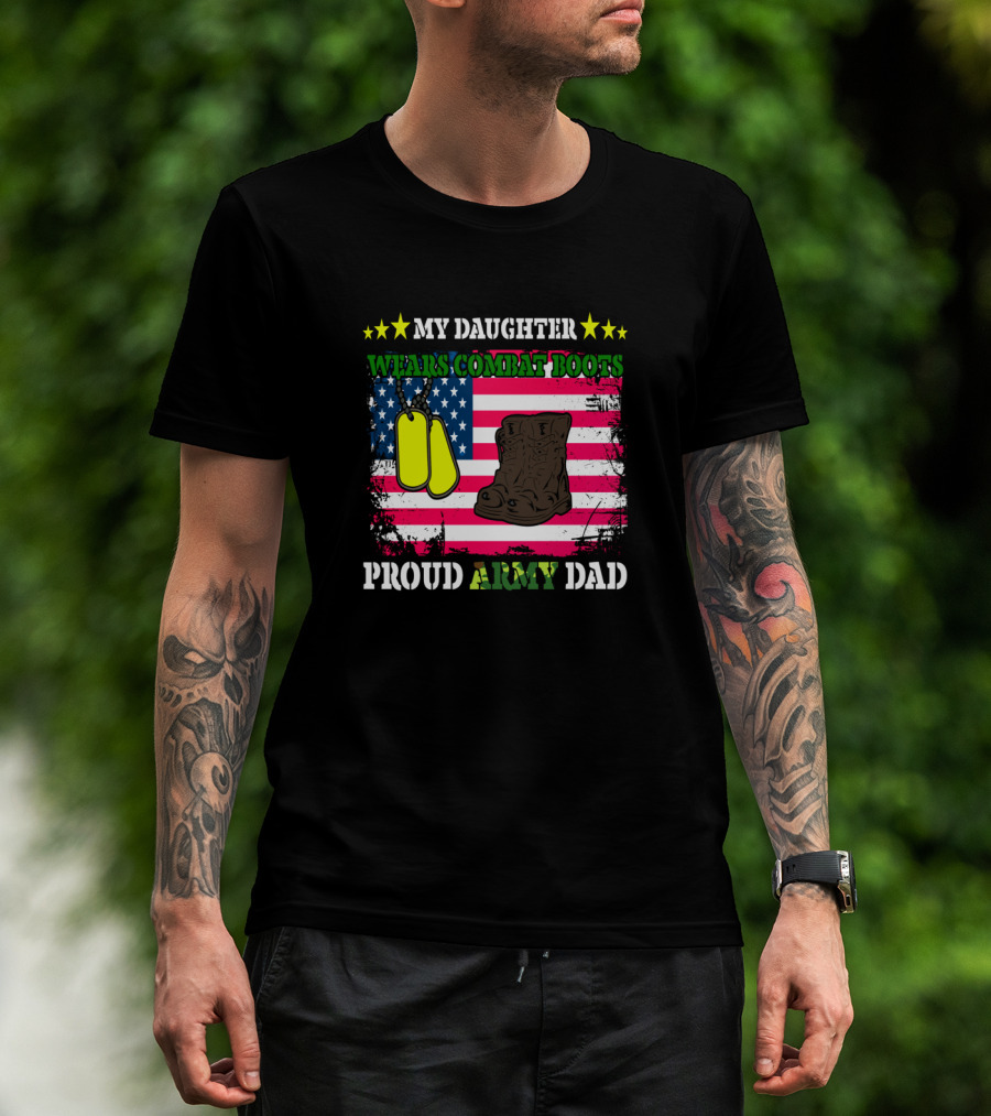 My Daughter Wears Combat Boots Proud Army Dad USA Flag Dog Tags T-Shirt