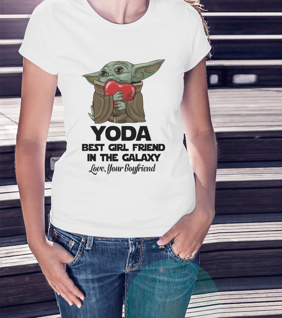 Yoda Best Girl Friend In The Galaxy Love Your Boyfriend Heart Hugging T-Shirt