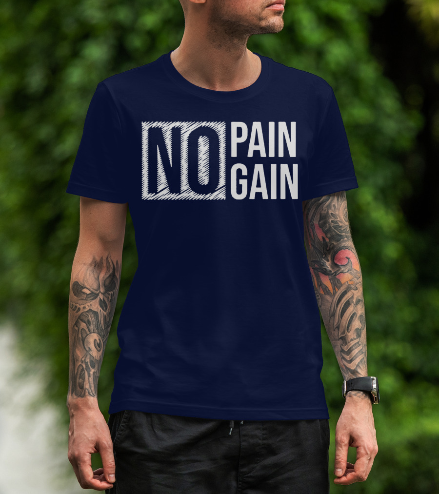 The NO PAIN NO GAIN T-shirt is designed for everyday wear and a consistent fit. Fabric is pre-shrunk ring-spun cotton with durable stitching. See the size chart below for exact measurements.