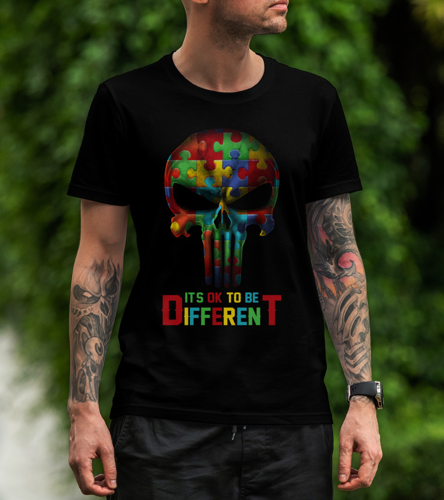 The Its OK To Be Different Puzzle Skull T-shirt is designed for everyday wear and a consistent fit. Fabric is pre-shrunk ring-spun cotton with durable stitching. See the size chart below for exact measurements.