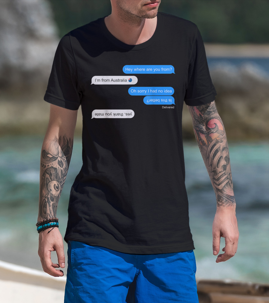 I'm From Australia Funny Upside Down Text Chat With Flag Emoji T-Shirt