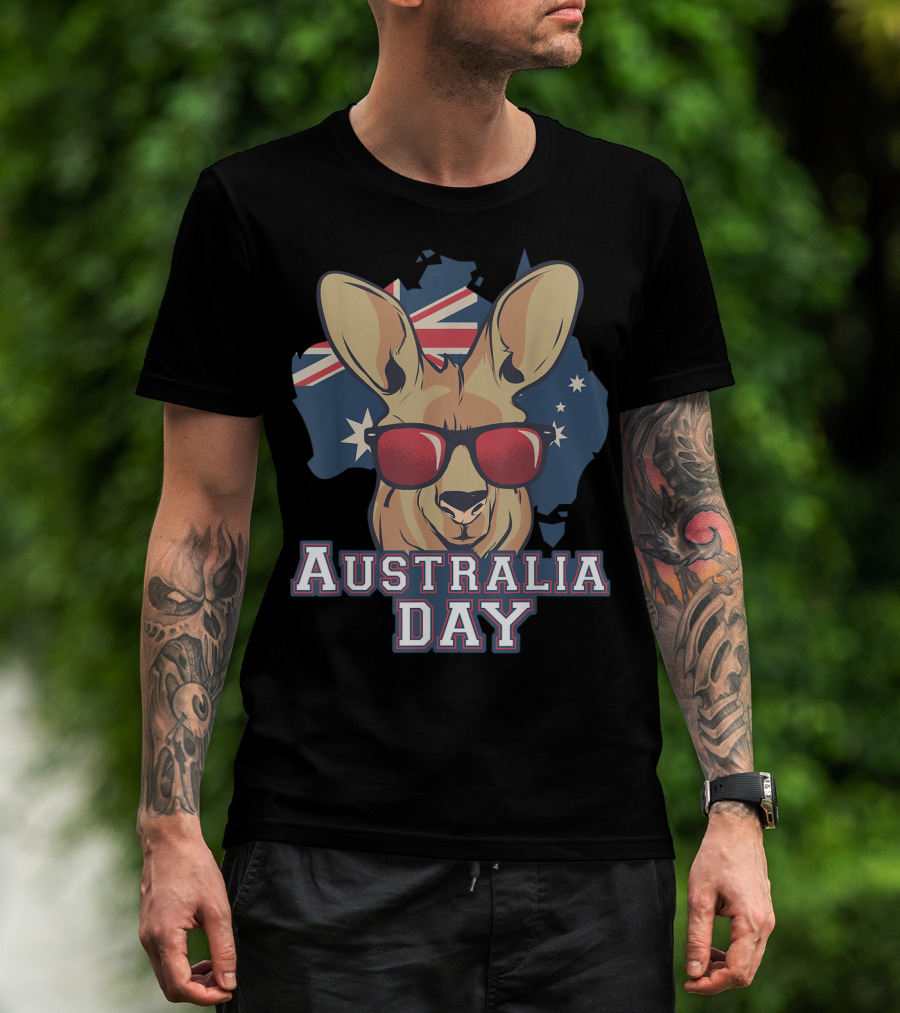 Australia Day Kangaroo With Sunglasses Australian Flag T-Shirt