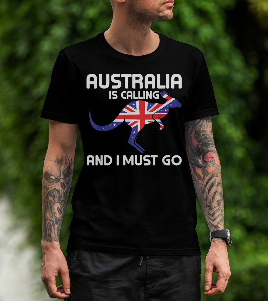 Australia Is Calling And I Must Go Kangaroo With Union Jack Flag T-Shirt