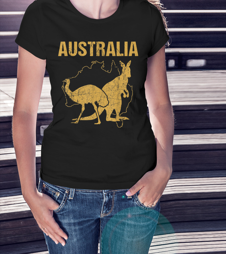 Australia Kangaroo And Emu Silhouette Map T-Shirt