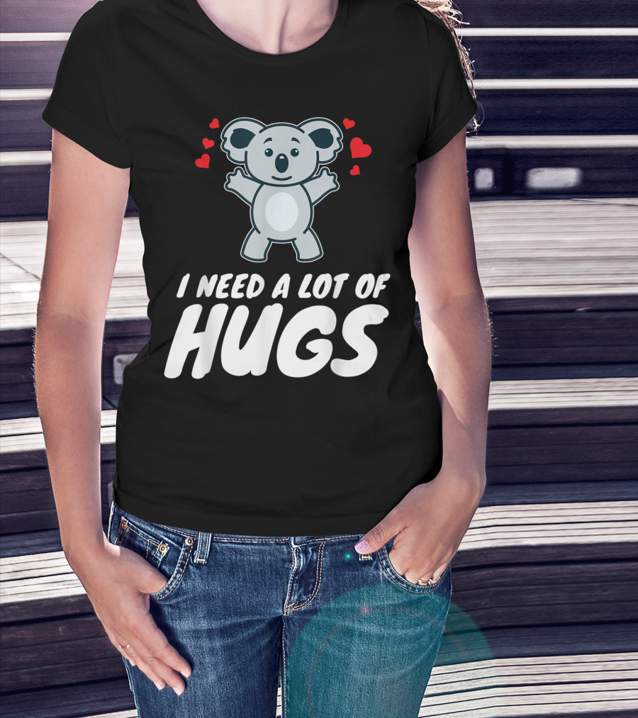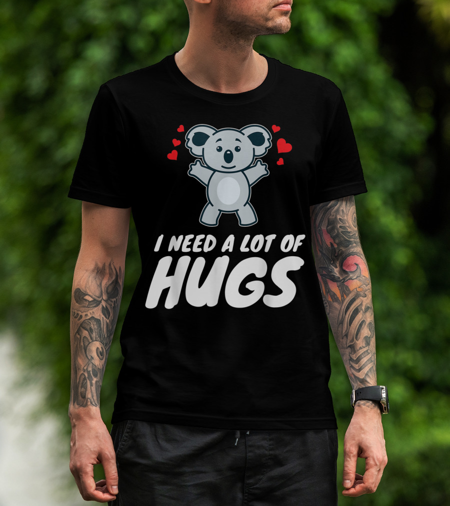I Need A Lot Of Hugs Koala With Hearts Party Mood T-Shirt