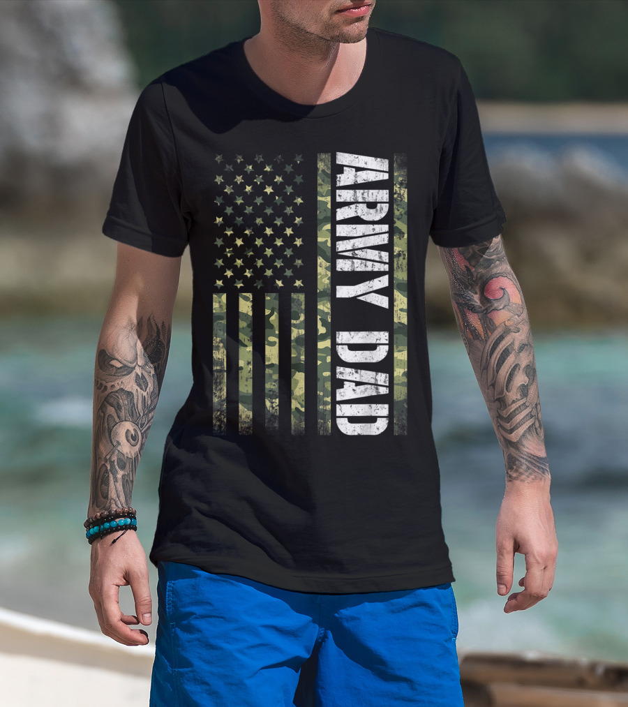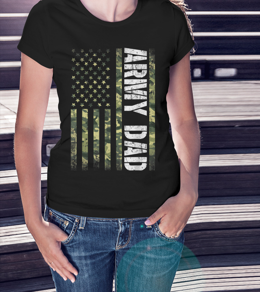 USA Camo Flag Army Dad T-Shirt