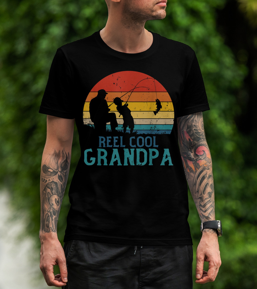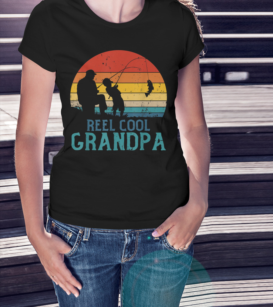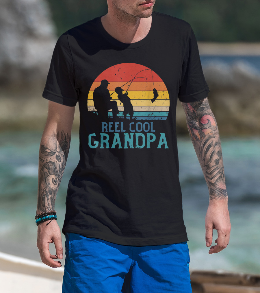 Reel Cool Grandpa Fishing Father's Day Grandfather Retro Sunset T-Shirt