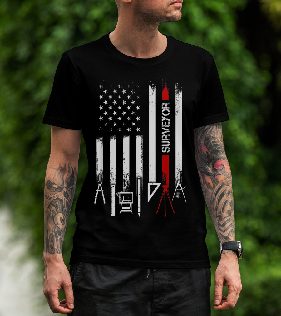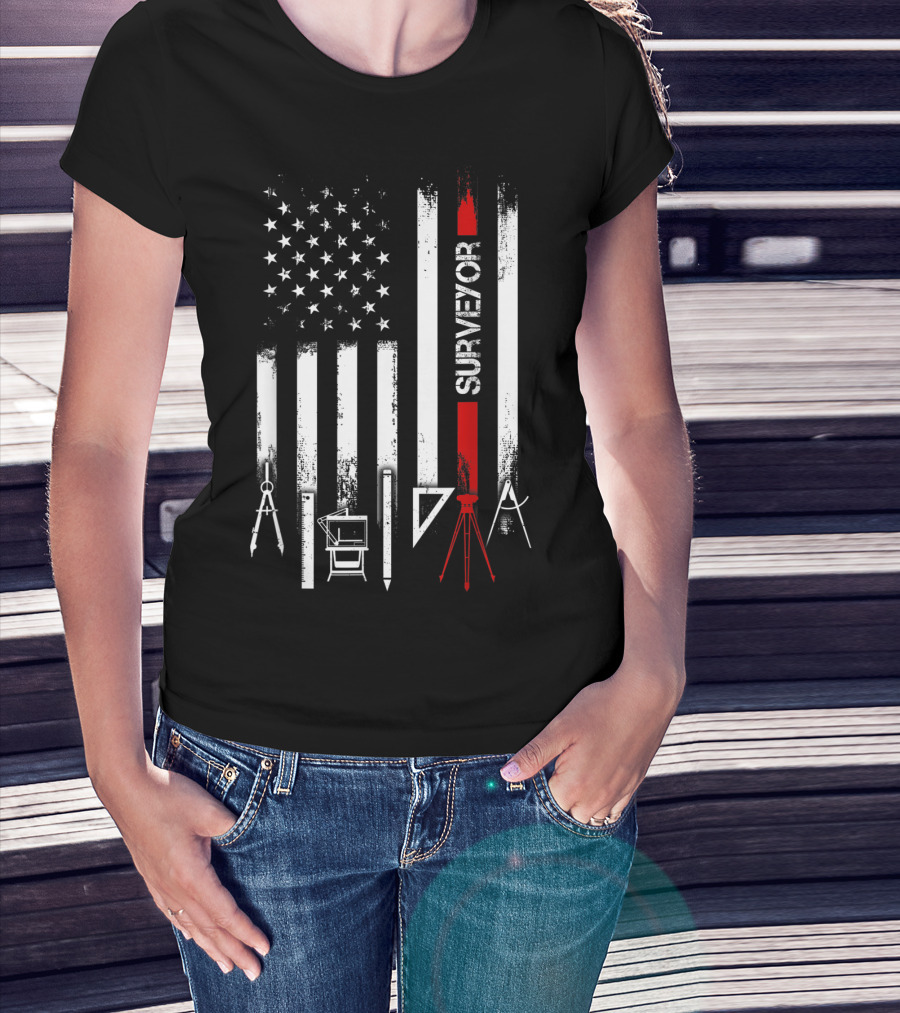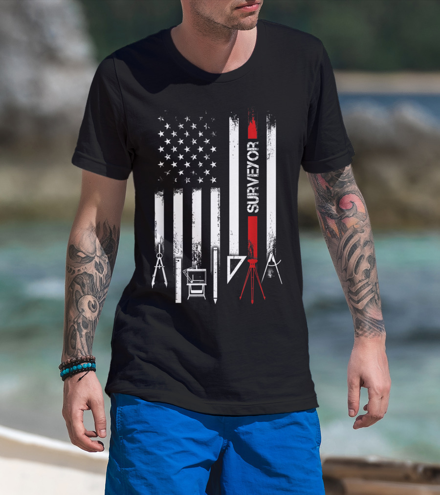 Surveyor American Flag With Tools And Compass Elements T-Shirt