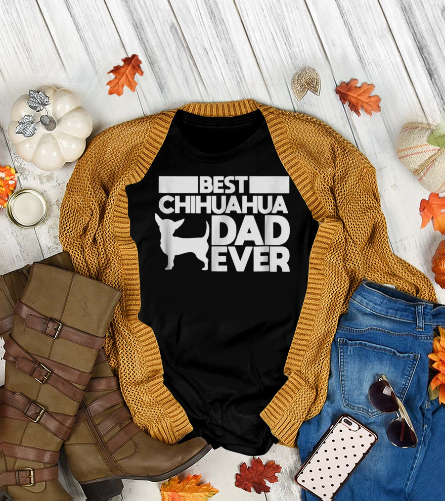Best Chihuahua Dad Ever With Silhouette Dog Father T-Shirt