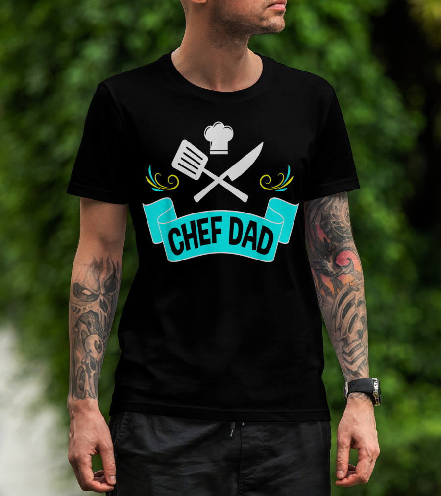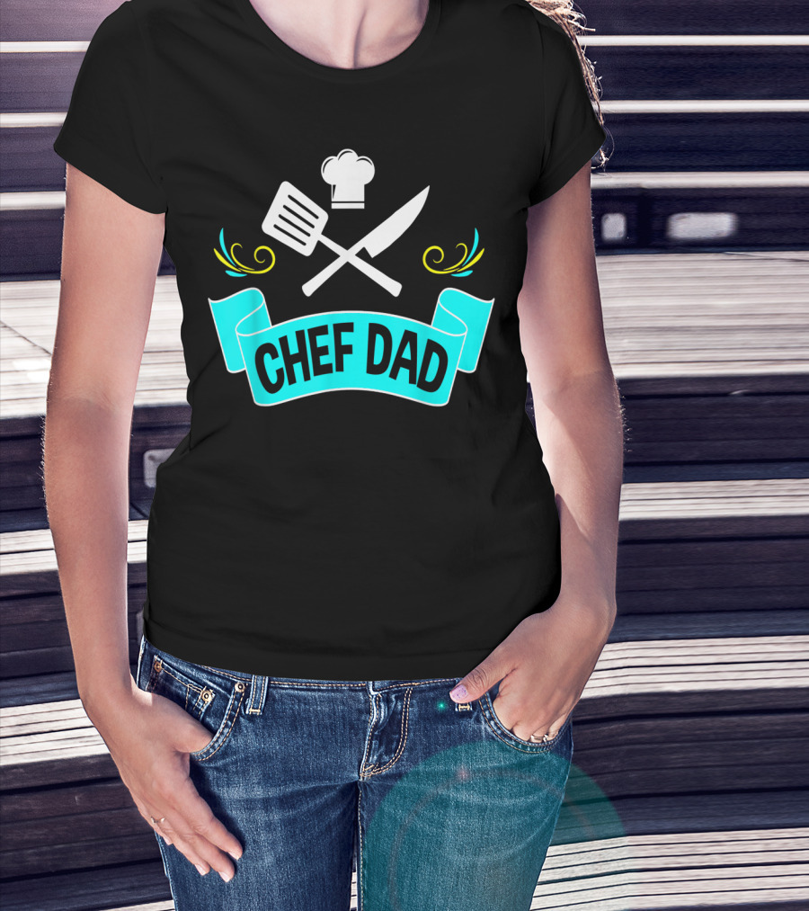 Chef Dad Cooking Daddy Banner With Chef Hat And Cooking Tools T-Shirt