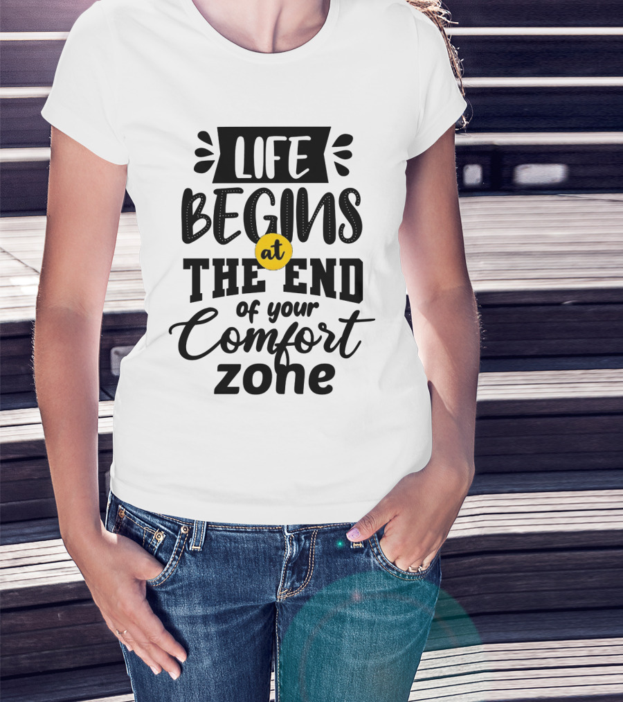 Life Begins At The End Of Your Comfort Zone Motivational Phrase T-Shirt