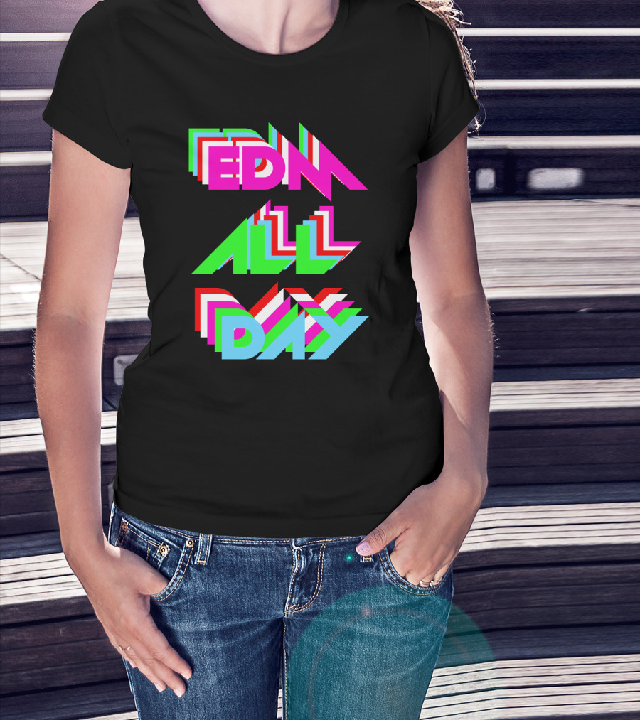 EDM All Day Cool Neon Anaglyph Style Rave Black Ink T-Shirt