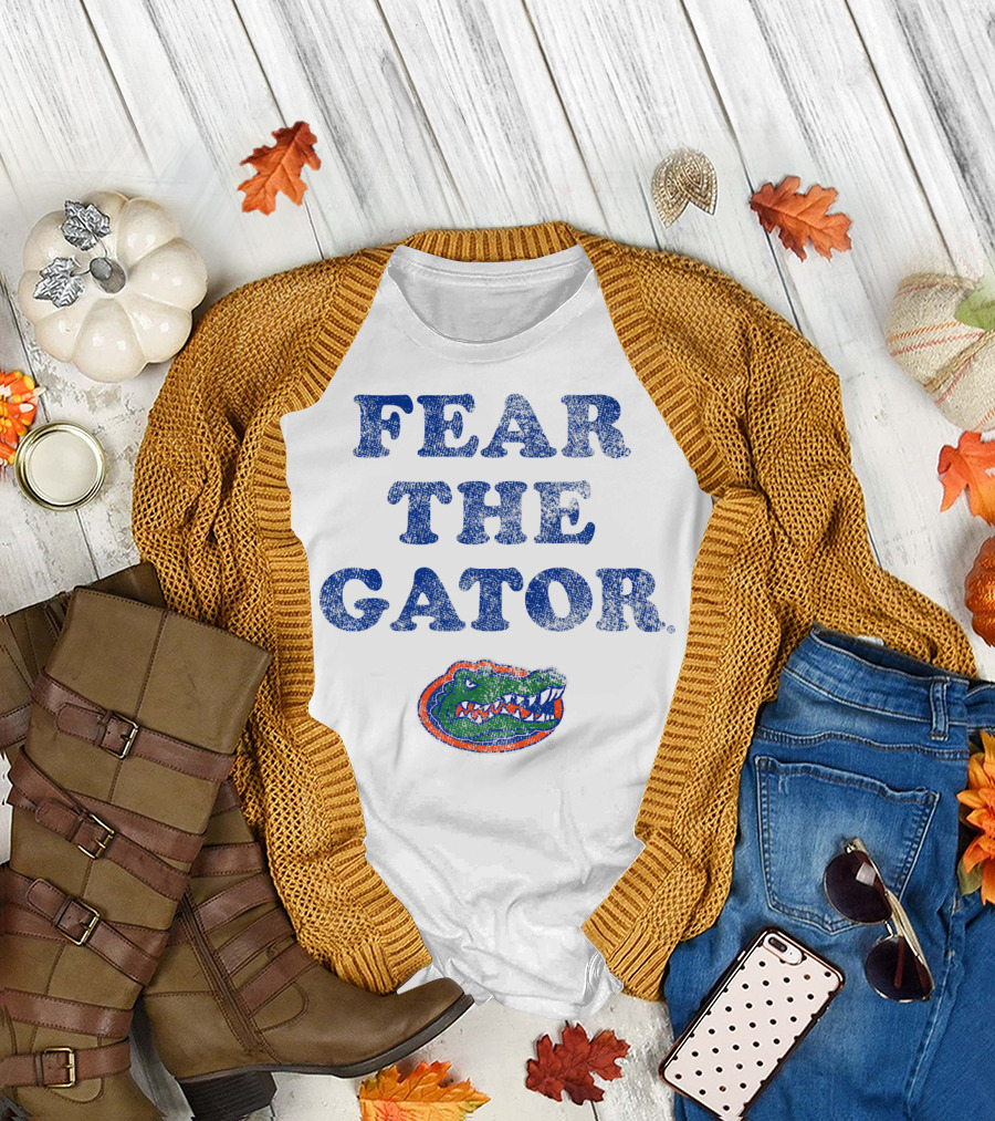 The NCAA University of Florida Fear the Gator T-shirt is designed for everyday wear and a consistent fit. Fabric is pre-shrunk ring-spun cotton with durable stitching. See the size chart below for exact measurements.