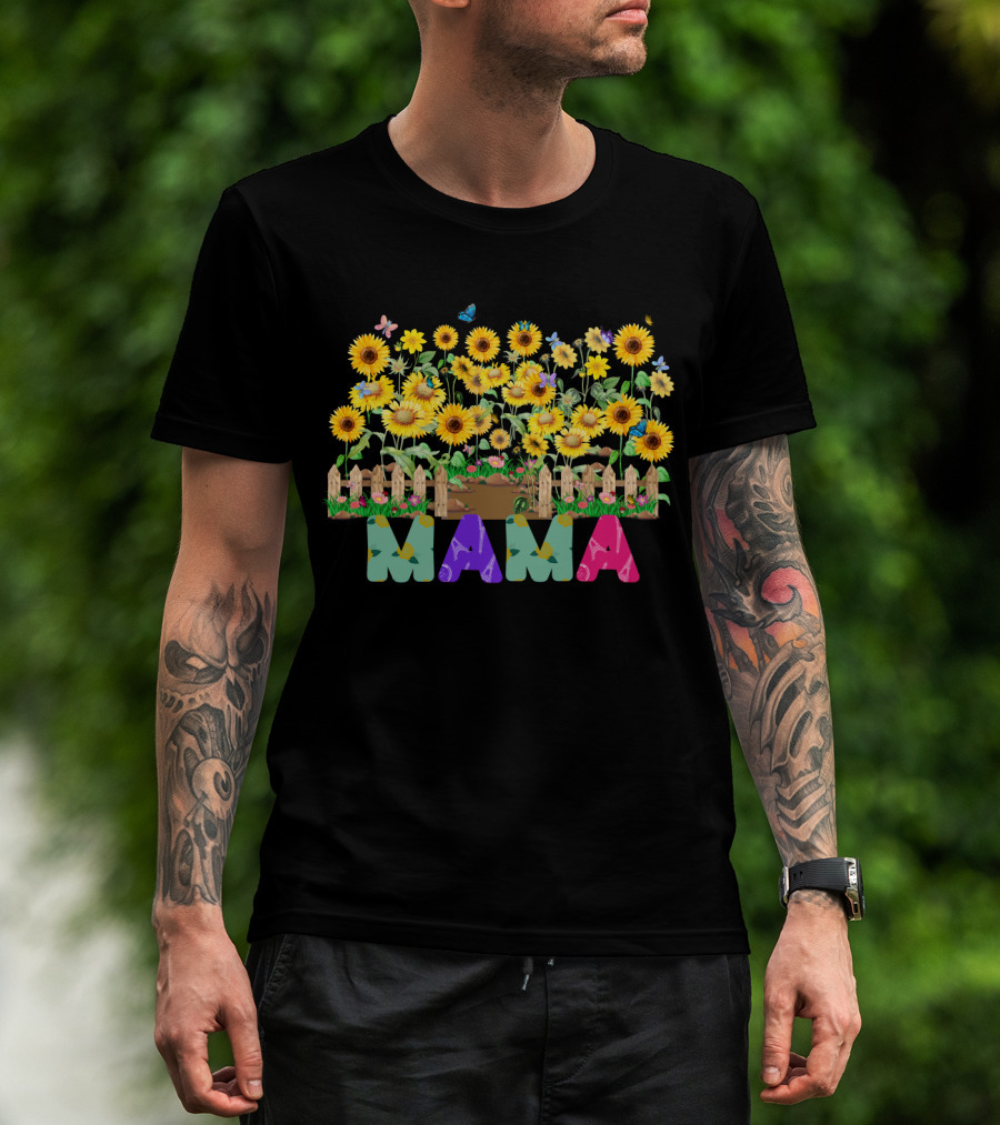 MAMA Sunflower Garden With Butterflies And Flowers T-Shirt