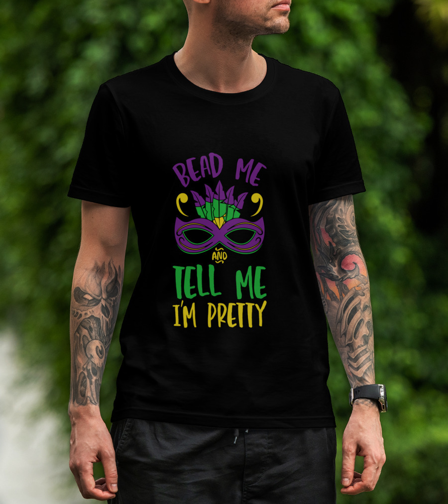 Bead Me Tell Me I'm Pretty Mardi Gras Mask Feather T-Shirt