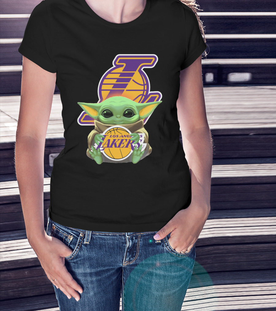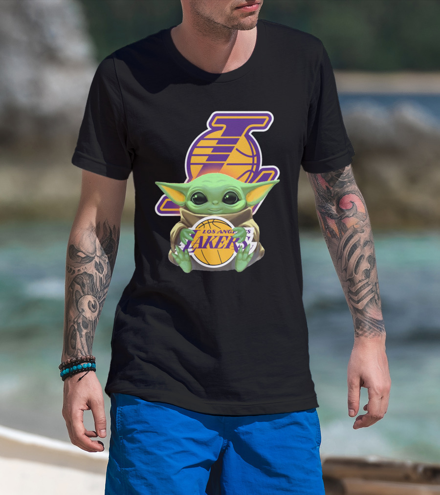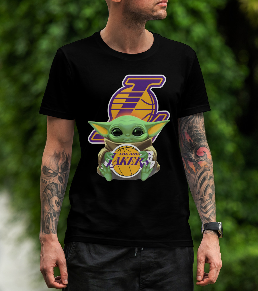 The Los Angeles Lakers Baby Yoda Holding Basketball T-shirt is designed for everyday wear and a consistent fit. Fabric is pre-shrunk ring-spun cotton with durable stitching. See the size chart below for exact measurements.