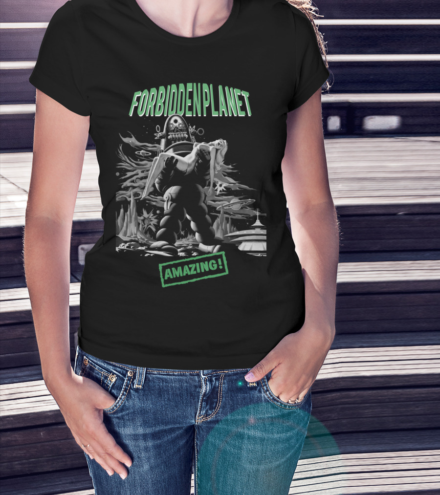Forbidden Planet Amazing Robot Carrying Woman Retro Sci-Fi Scene T-Shirt