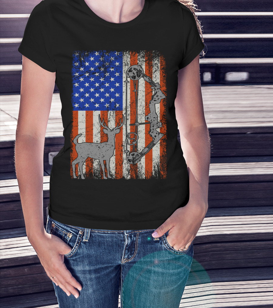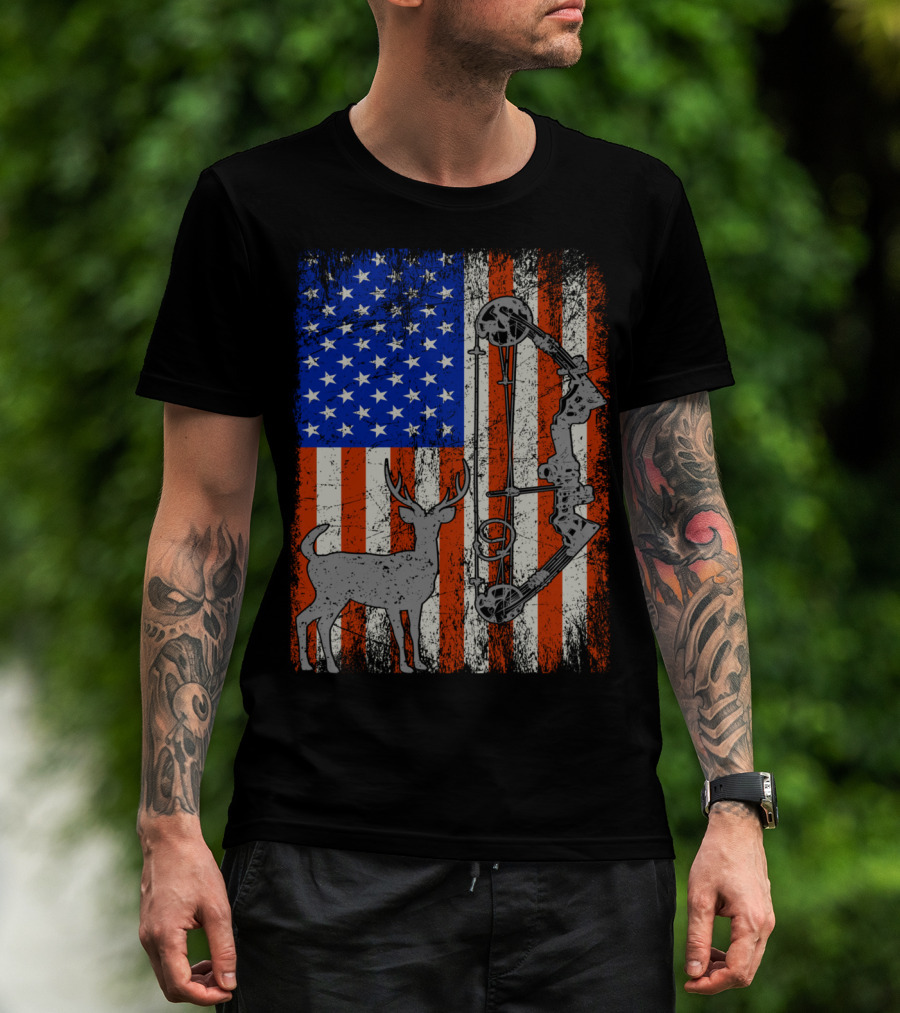 American Flag Deer Bow Hunter Hunting T-Shirt