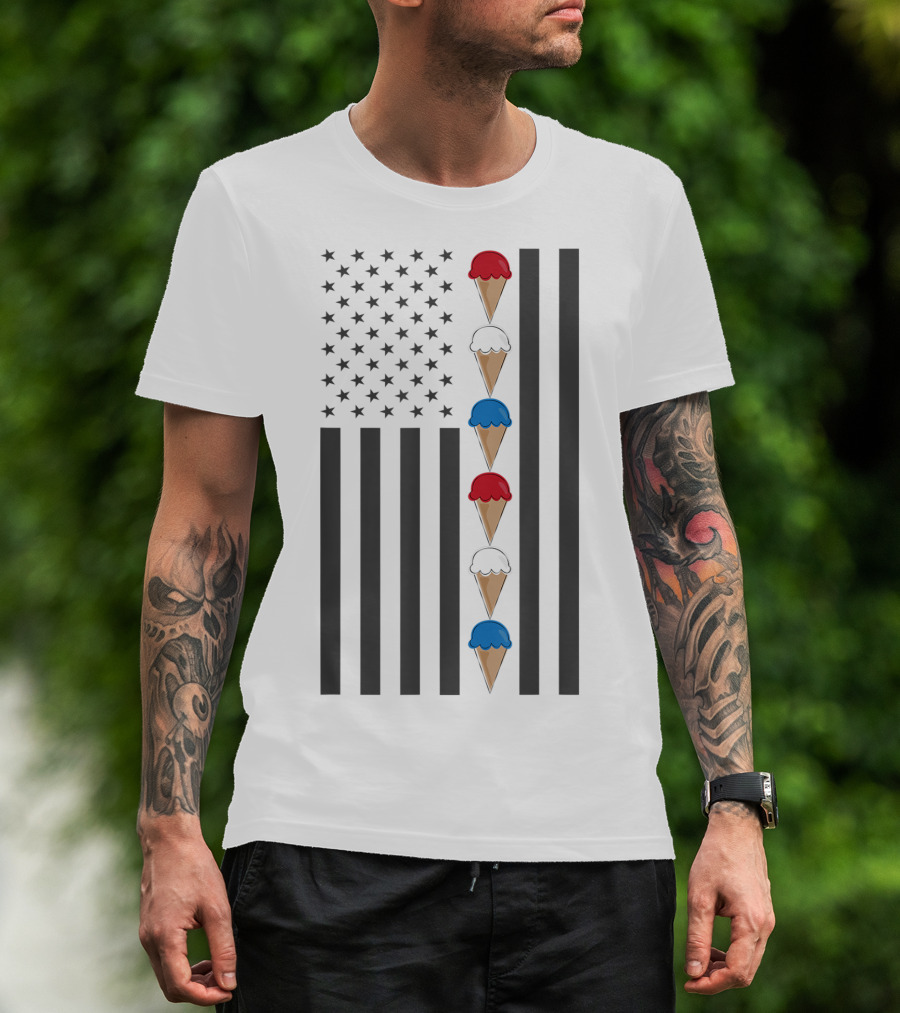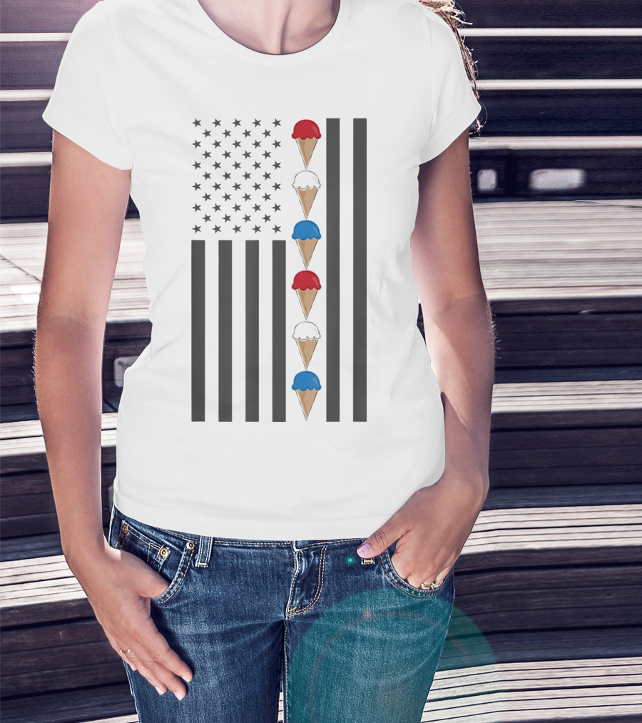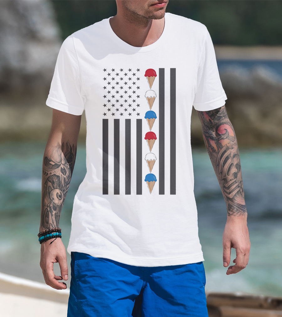 American Flag Ice Cream Cones Red White And Blue Patriotic Summer T-Shirt